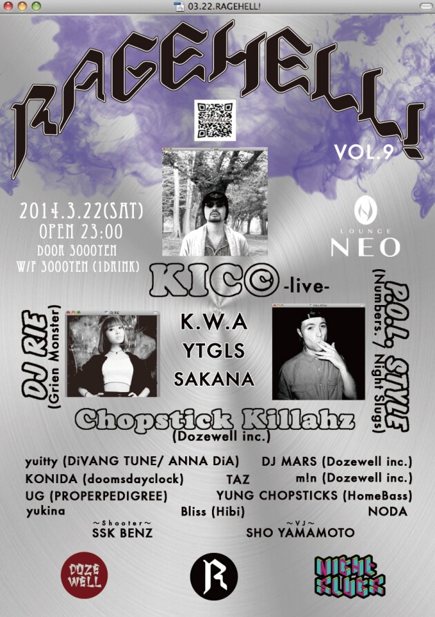 2012 年より東京の新世代のユースカルチャーを発信するべく始まった集団テロとも形容されるパーティー RAGEHELL(レイジヘル)。