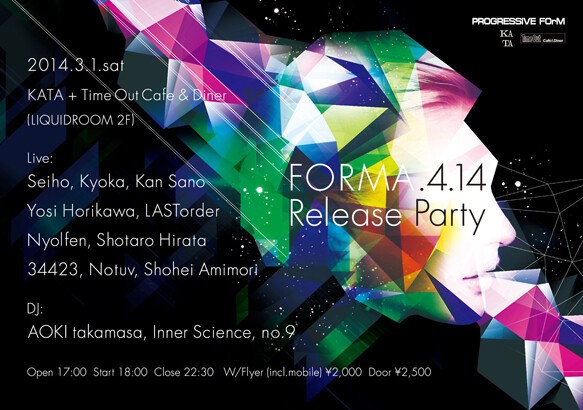 2001年より日本のエレクトロニック・ミュージック・シーンに様々な作品を送り続けてきたPROGRESSIVE FOrMの40番目のカタログとして2010年以来4年振り、2014年1月14日発売となったレーベルの記念碑的コンピレーション・アルバム『Forma』シリーズの第4弾『Forma. 4.14』の参加アーティストによるリリース・イベントがLIQUIDROOM 2FのKATA + Time Out Cafe & Dinerで開催決定!