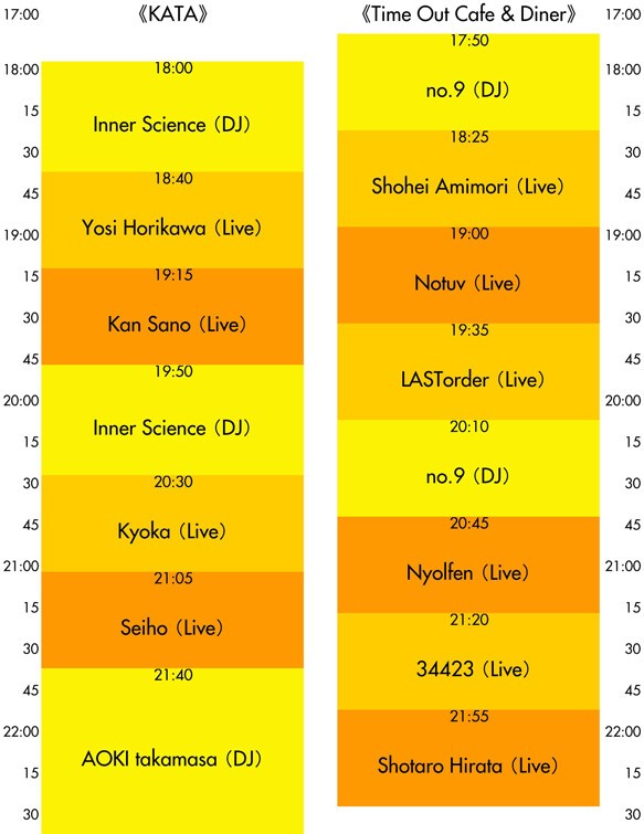 All Exclusive!!! AOKI takamasa、no.9、Inner Science、Seiho、Kan Sano、Kyoka、Fugenn & The White Elephants、LASTorder、34423、moshimossなど参加!