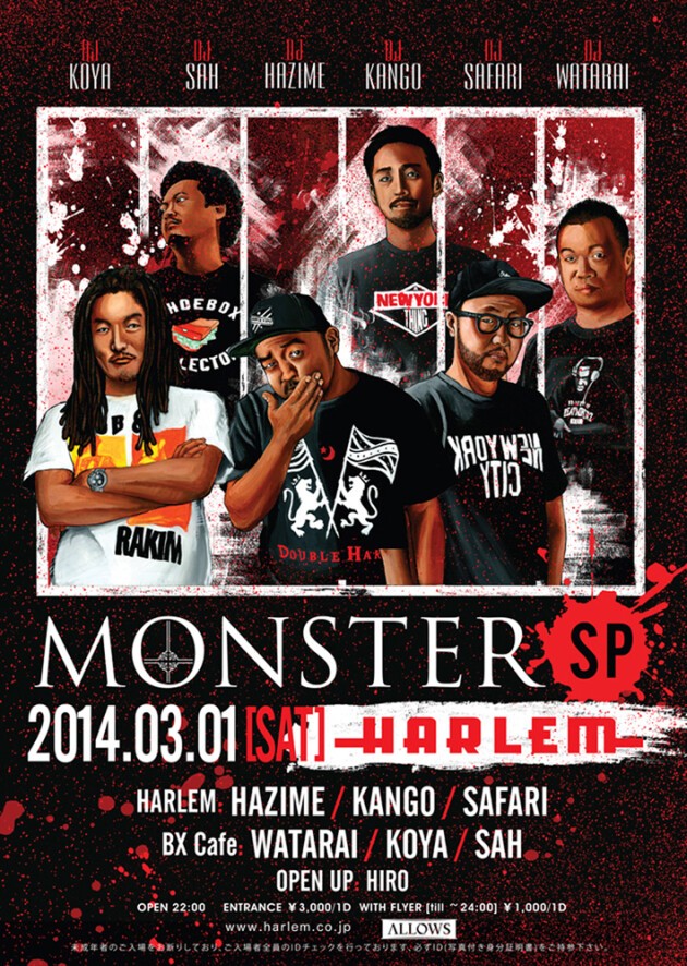 3月1日は、HARLEM・BX CAFE全館でMONSTER DJSが出演。