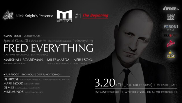 今度の3/20 METRO #1 @西麻布 FREQで、久しぶりに来日するSpecial Guest DJ FRED EVERYTHING -'The Master at Work'-の最高なプレイを楽しむ特別な機会に間違えない!