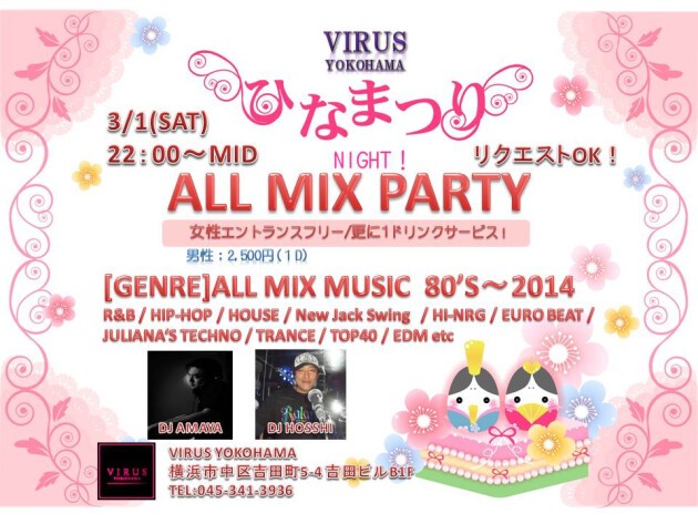 DJキャリアを積んだDJ AMAYAと、DJ HOSSHIが盛り上げます。