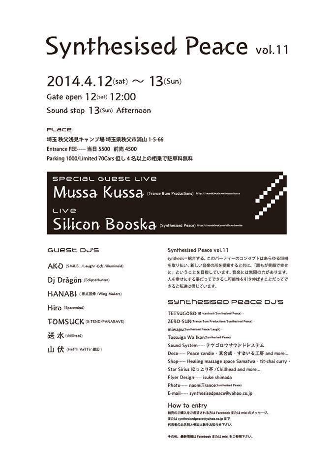 ・前売のご購入をご希望される方はFacebookまたはmixiのメッセージ、またはsynthesisedpeace@yahoo.co.jpまで代表者のお名前と参加人数をお知らせ下さい。