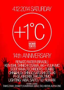 4月12日(土) 渋谷「WOMB」が14周年を迎える。今年のコンセプトは「WOMB TOKYO +1℃」KEN ISHII、大沢伸一を筆頭にWOMBレジデントアーティスト総出演!