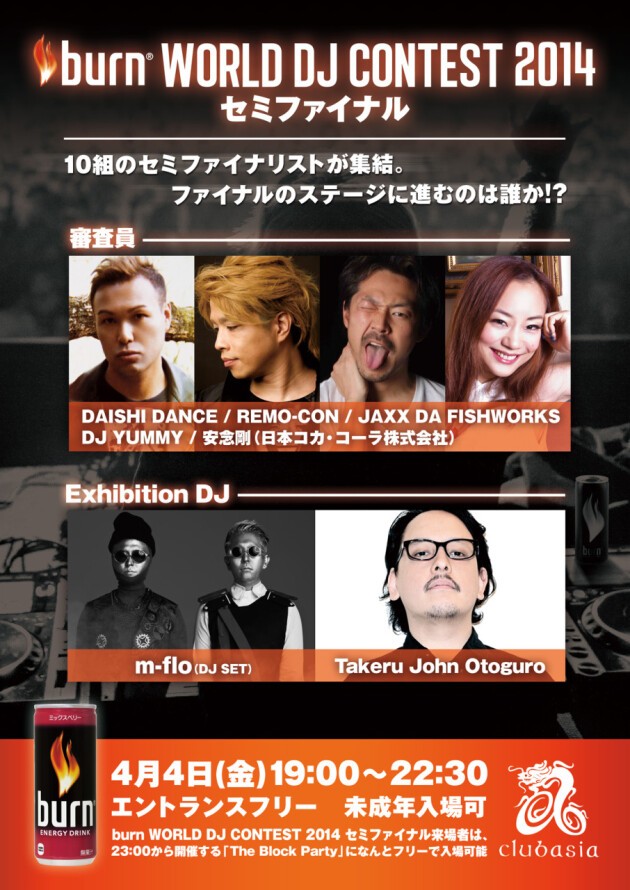 多くのDJの応募で盛り上がりをみせた”burn WORLD DJ CONTEST 2014” 。多数の投票、応援を元に4/4に”渋谷club asia”にて開催されるセミファイナルに進出する10組がついに決定。