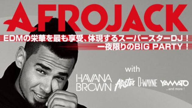 アフロジャックの来日公演が5月30日(金)ageHaに決定しました。。ハヴァナブラウン、APSTER、YAMATOの出演も発表されました。