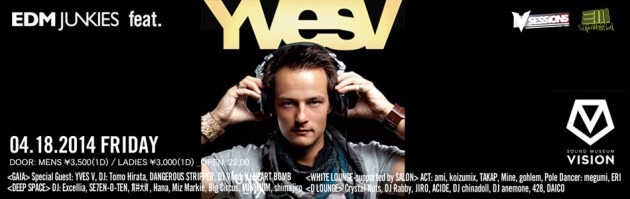 今晩、4月19日(金)渋谷・SOUND MUSEUM VISIONにて開催されるEDMパーティ「EDM JUNKIES」にYVES Vが登場。