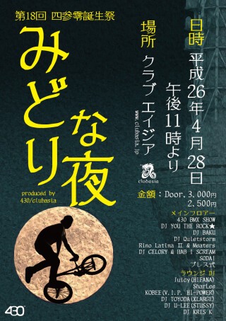 結成18周年を迎えるBMXチーム430(フォーサーティ)が贈る自己誕生祝い的イベント「みどりな夜」。