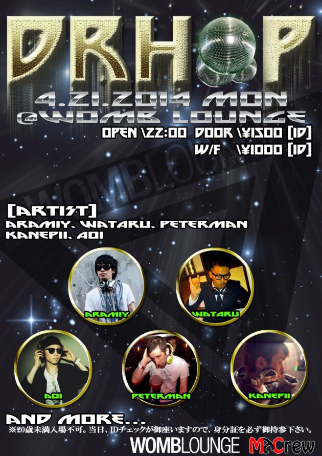 2011.2月からスタートした「H"」EDGEが新しく「DRhOP」(ドロップ)として生まれ変わり、東京クリエイティブナイト"をコンセプトとする新しい PARTY が始動!