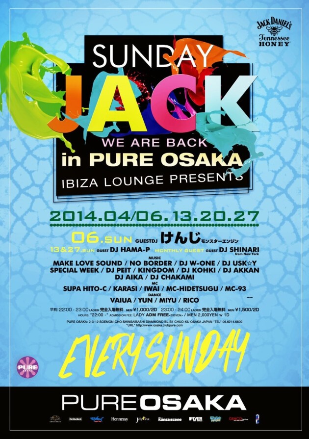 複数のビッグクラブで開催されてきたJACKがパワーアップして今回はCLUB PUREの毎週日曜日に開催が決定しました。