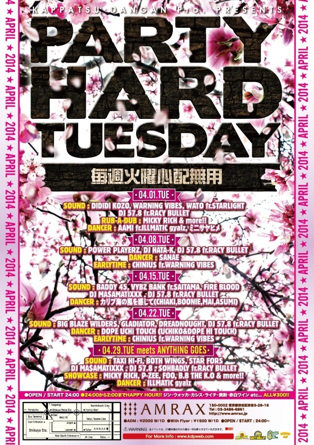 活発弾丸がプロモートする、毎週火曜のBIG PARTY!!! 2001年8月にスタートして以来現在に至るまで、毎週火曜の東京渋谷の夜を騒がしている!