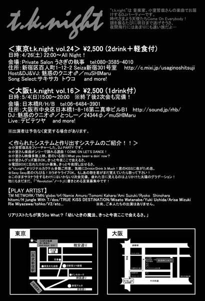 “t.k.night”“T.K Afternoon”は音楽家、小室哲哉さんを愛する夢のパーティーです。