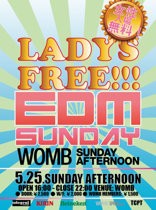 最新のEDMから誰でも知ってる大ヒット曲まで日曜の夕方16時から22時までの6時間 日本最大級のWOMB SUNDAY AFTERNOONで盛り上がろう!