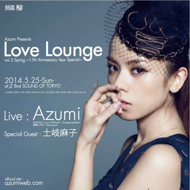 2014年5月でデビュー15周年イヤーに突入するAzumiが、5月25日にJZ Brat Sound of Tokyoにて主催イベント<Love Lounge>Vol.3を開催する。