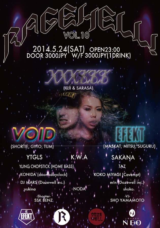 2012 年より東京の新世代のユースカルチャーを発信するべく始まった集団テロとも形容されるパーティー RAGEHELL(レイジヘル)。