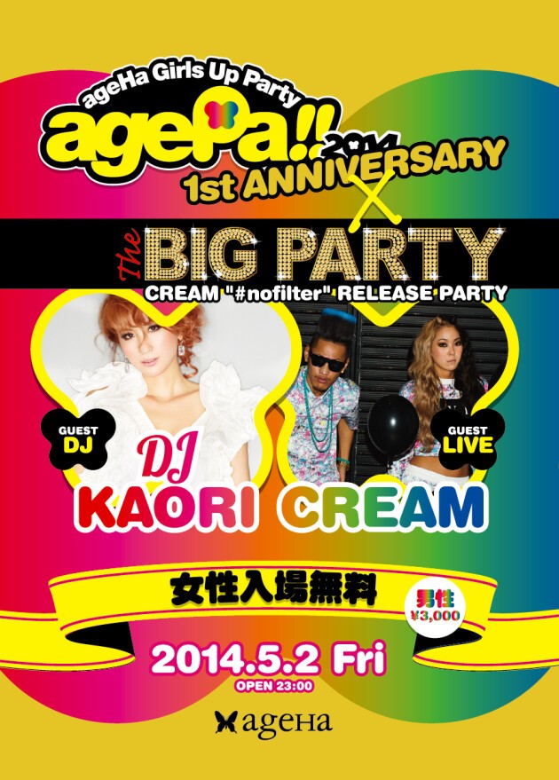 そして、agePa!!の看板アーティストと言っても過言ではないCREAMがニューアルバム"#nofilter”を引っさげ、リリースパーティーを同時開催!!日頃のご愛顧にお応えしてこの日ももちろん女性入場無料!!