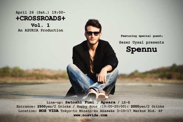 For the first edition of +CROSSROADS+, we are showcasing the talents of the young Turkish producer who has been making waves across the global deep house and progressive house scene, Sezer Uysal. He will perform under his alias Spennu with a focus on deep house grooves. His own recommended Japanese DJ Satoshi Fumi, a veteran of the decks who can be spotted at Tokyo's top clubs, will be joining us as well for this exclusive evening. Also gracing the decks will be international star Apsara, whose gigs run an impressive range from mega-festival Tomorrowland to San Francisco's Ruby Skye to residency gigs at Jakarta's massive Stadium Club.