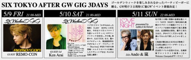 SIX TOKYO GOLDEN WEEK SPECIAL 11DAYS 2014 開催決定!