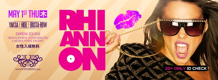 5月1日(木)前回V2 TOKYOを盛り上げてくれたSEXYなRHIANNONが再登場します!皆さん彼女に負けない位セクシーにDRESS UPして来店してください♪是非お楽しみに☆