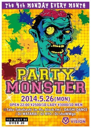 週末だけが盛りあがっていても、真のエンターテインメントシティとはいえない。週初めである月曜日から、渋谷の夜をもっと熱くしていきたい。そんな強い思いを込めて、VISIONを舞台に新たなウィークデイパーティが2週連続でスタートする。その第1弾が、この日開催される“PARTY MONSTER”だ。メインアクトには、m-floのニューアルバム「FUTURE IS WOW」とミックスCD「EDM-FLO」の同時リリースでますます勢いに乗る☆Taku Takahashi、そして東京のEDMシーンを牽引するDAISHI DANCEが登場。週末並みの豪華ラインアップがセットされた空間で心沸き立たせ、曜日にこだわらないより自由な遊び方を発見してほしい。