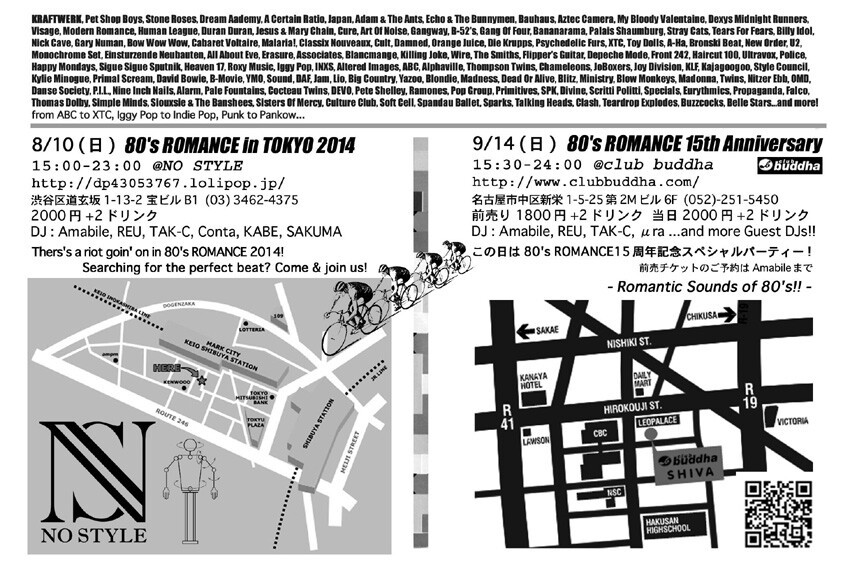 01年8月14日にスタートした80's ROMANCE in TOKYOも今年で14年目=14回目に突入!