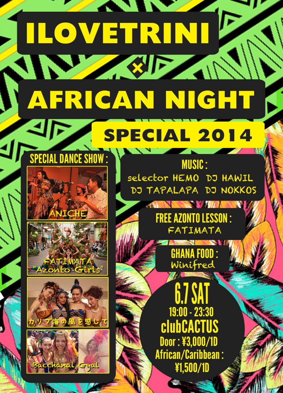 カリブ&アフリカのコラボパーティー!!トリニダード&トバゴのカーニバル音楽「SOCA」をメインとしたPARTY「I LOVE TRINI」と、セネガルのダンスを日本へ持ち込んだ第一人者FATIMATA主催のアフリカンダンスや音楽を楽しむ「AFRICAN NIGHT」がタッグを組みました!!