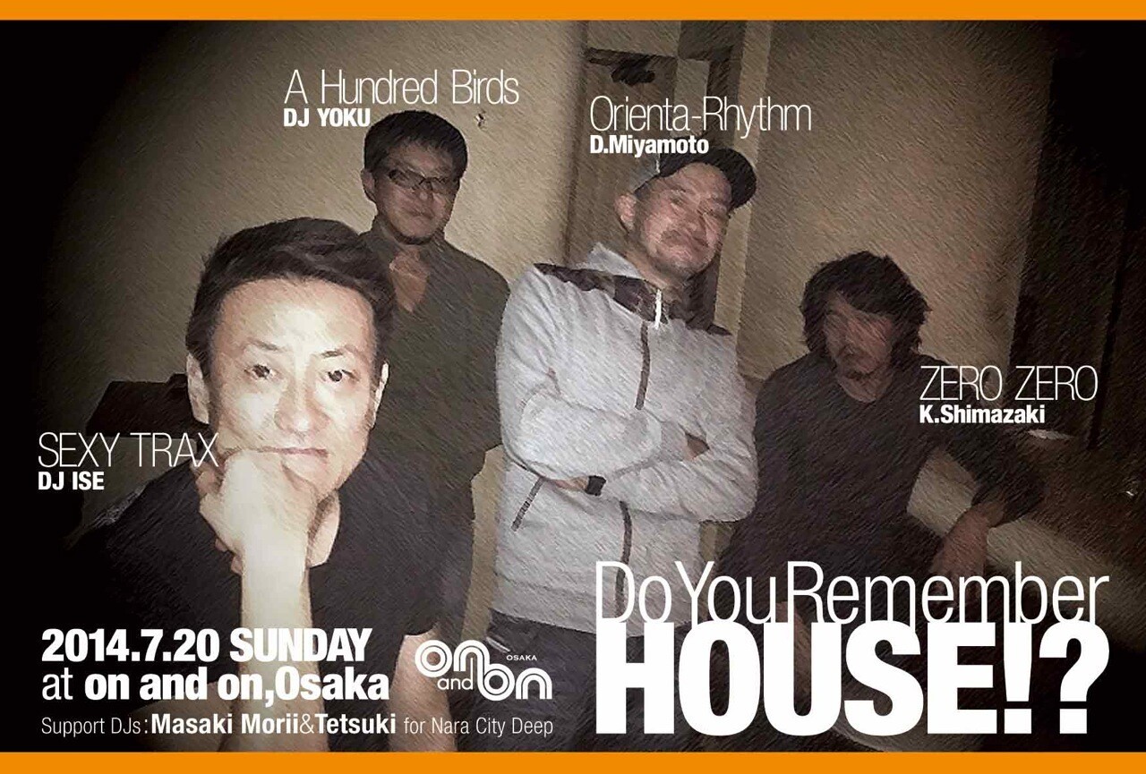 A Hundred Birds”のDJ YOKU、”Zero Zero”のK.Shimazaki、”Orienta-Rhythm”のD.Miyamoto、そして伝説のパーティー「SEXY TRAX」のレジデントであり、関西ハウスシーンのレジェンド、DJ ISE。