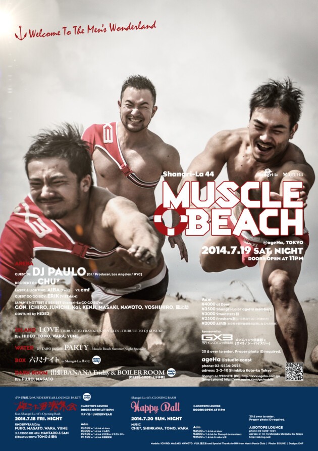 昨年、過去最高動員記録を打ち立てた一年で一番HEAT UPするShangri-Laは、言わずと知れたこの ”MUSCLE BEACH”。
