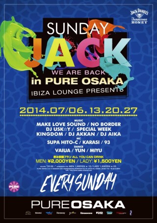 複数のビッグクラブで開催されてきたJACKがパワーアップして今回はCLUB PUREの毎週日曜日に開催が決定しました。