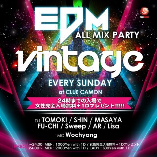 【毎週日曜VINTAGE】日曜カモンは関西主要CLUBで活躍中のGLISTERメンバーがお届けする終日女性入場無料のEDM & ALL MIX PARTY『VINTAGE』☆☆