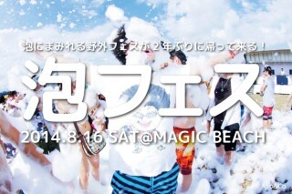 いつもはクラブで行われる「泡パ」が外に飛び出し、泡にまみれる野外フェス「泡フェス」として登場!会場となるのは、豊洲にできた話題の新スポット「マジックビーチ」。開放的な芝生の会場で、いつも以上に泡まみれの大盛り上がり間違いなし。