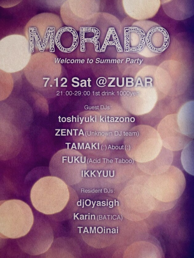 毎週第2土曜開催のMORADO!!! 今回はサマースペシャルということでいつものガールズメンバーに加え、素敵なゲストをたくさんお迎えいたします。どなた様もお誘い合わせの上、せび遊びにいらしてください! 美味しいお酒と音楽で乾杯しましょう。