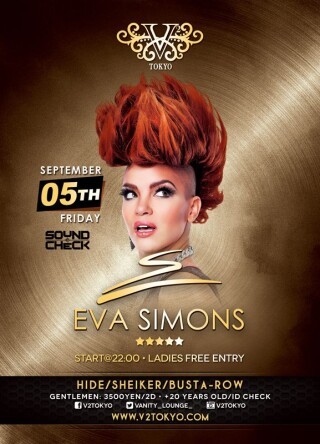 スケジュール変更のお知らせとお詫び: 9月5日(金)に渋谷WOMBで予定されていたEVA SIMONSの公演は、スケジュールの変更の為、22:00 ~V2東京で行う事になりました。渋谷WOMBでの公演を楽しみにしてくださっていたお客様には深くお詫び申し上げるとともに、何卒ご理解頂けますよう、お願いいたします。ご迷惑をお掛け致します。 V2 Tokyo