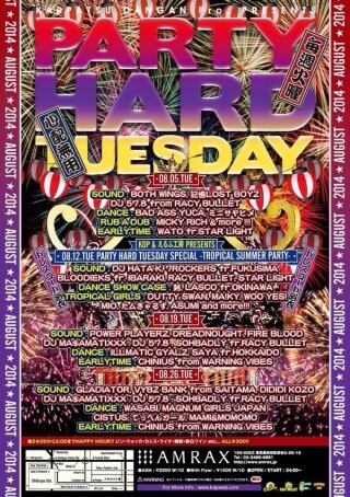 もともとは、AMRAXの前身の箱である、当時のCLUB SIMOONにて行われていた、『SIMOON LIGHT DANCE』を2006年4月いっぱい開き、2006年5月からCLUB UNITYにて行われ、タイトルも『PARTY HARD TUESDAY』とリニューアルし、ますますBIGなPARTYに!そして、2007年10月からはCLUB AMRAXに場所を改め、HOSTであるRACY BULLET & ENT DEAL LEAGUEと共に、毎週毎週、豪華なGUEST SOUND, ARTIST, DANCERを迎えて、引き続き行われている。毎週火曜は心配無用のBIG PARTY ! 『PARTY HARD TUEDAY』!!!
