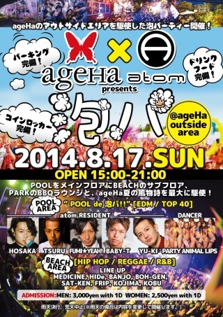 POOLをメインフロアにBEACHのサブフロア、PARKのBBQラウンジと、ageHa夏の風物詩を最大に駆使!