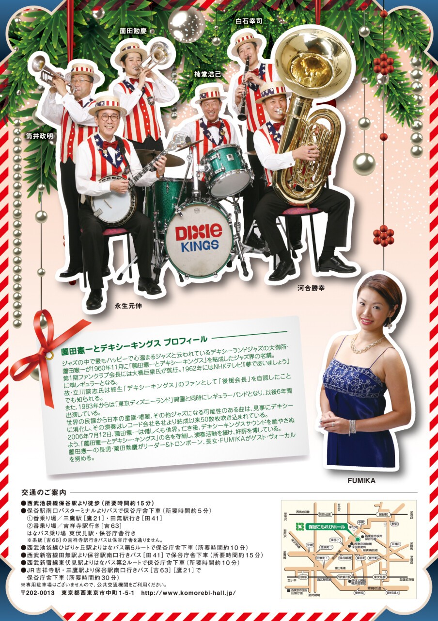 来年55周年を迎える老舗バンド「薗田憲一とデキシー・キングス with FUMIKA」がクリスマスライブ