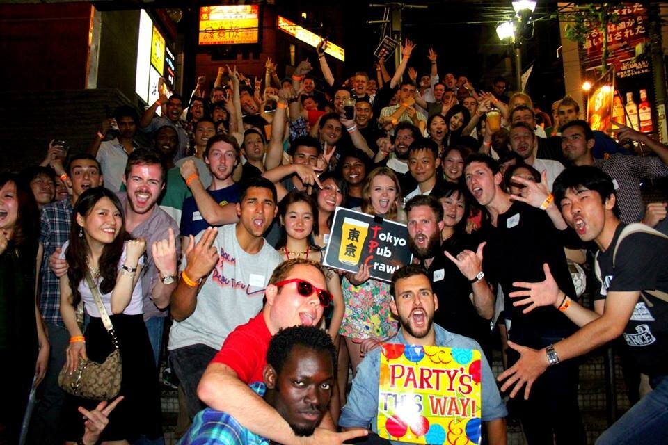東京パブクロールは、大人数グループでバー巡りをするインターナショナルパーティー!日本語詳細は下に記載。