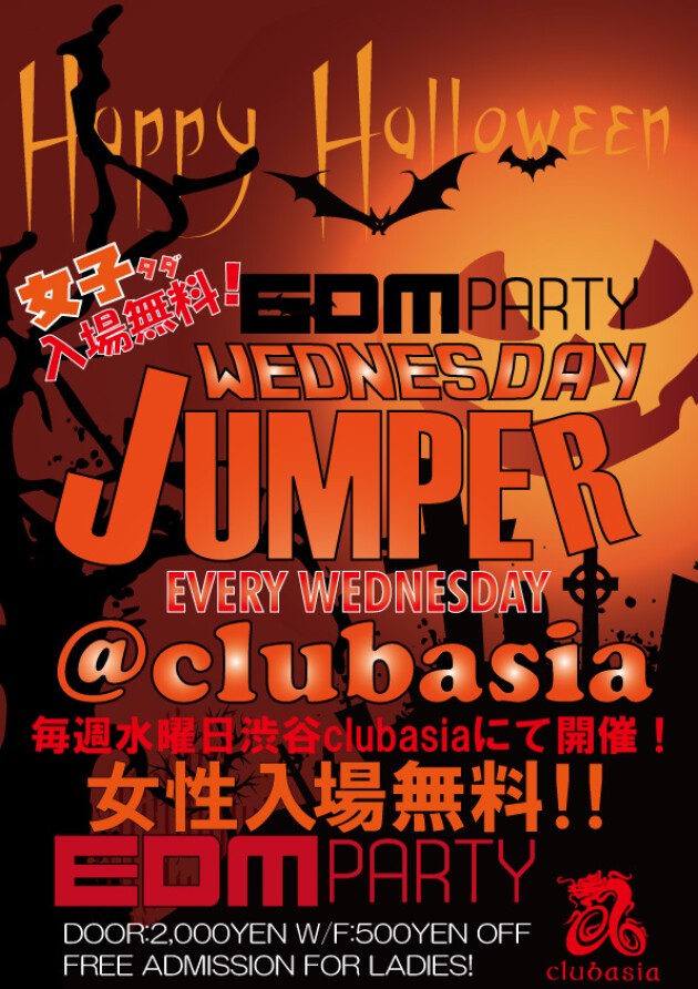 毎週水曜日JUMPERの人気DJ陣を中心に都内各所で活躍するEDM DJが集結し、水曜日のclubasiaを盛り上げる!