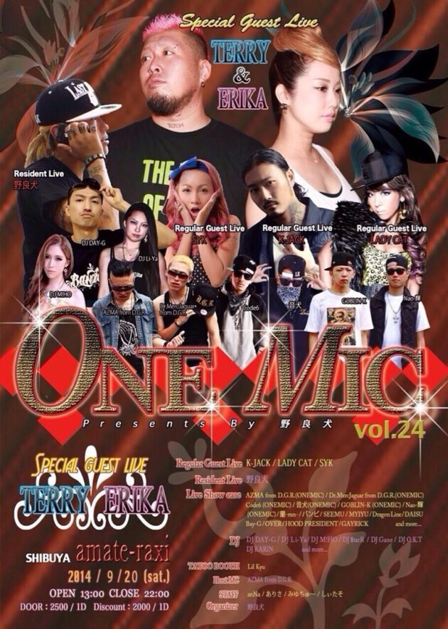 LIVE SHOW CASE: AZMA from D.G.R.(ONEMIC), Dr.MercJaguar from D.G.R.(ONEMIC), 音犬(ONEMIC), Code6(ONEMIC), GOBLIN-K(ONEMIC), Nao-輝(ONEMIC), 蘭-run-, バンビ, MYIYU, Dragon Line, DAISU, Bay-G, OVER, HOOD PRESIDENT, GAYRICK, and more…