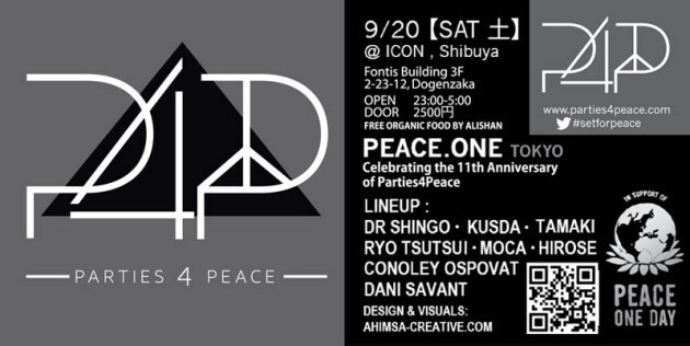 Parties4Peaceは9/20(土)にPeace One Dayとして11周年を祝うパーティーを開催します!