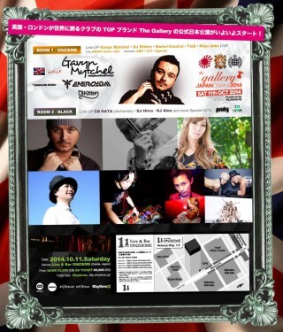 We have one of the Gallery’s official artists Gavyn Mytchel as a guest dj from London alongside Energy Dai (played at main room of Ministy Of sound London last month), Dj Kitten and more Osaka djs.