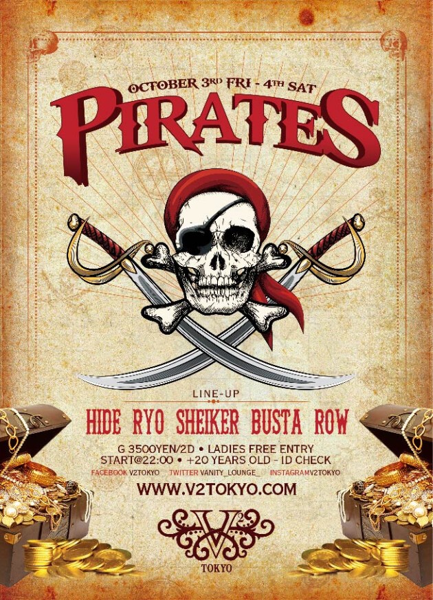 今週末の10/3(金)と4日(土)、V² TOKYOは『PIRATES』の開催です♪♪