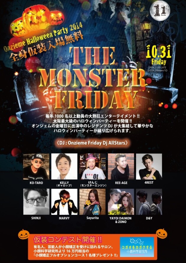 オンジェムの金曜日に出演中のレジデンツDJが大集結して華やかなハロウィンパーティーが繰り広げられます。