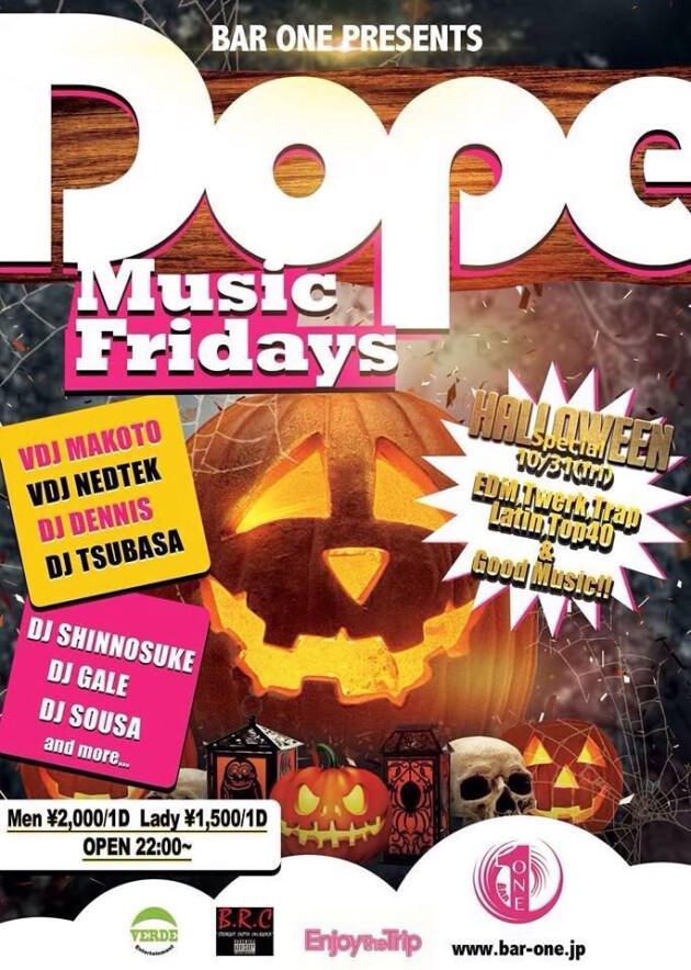 ぜひ、BAR-ONE Dope Music Fridaysみなさまと楽しいハロウィンナイトを♥