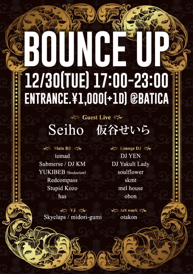 毎回、出演者だけでなく来場者もアーティストやクリエイターで溢れる大人気のデイパーティBOUNCE UPが今年も大忘年会を開催!