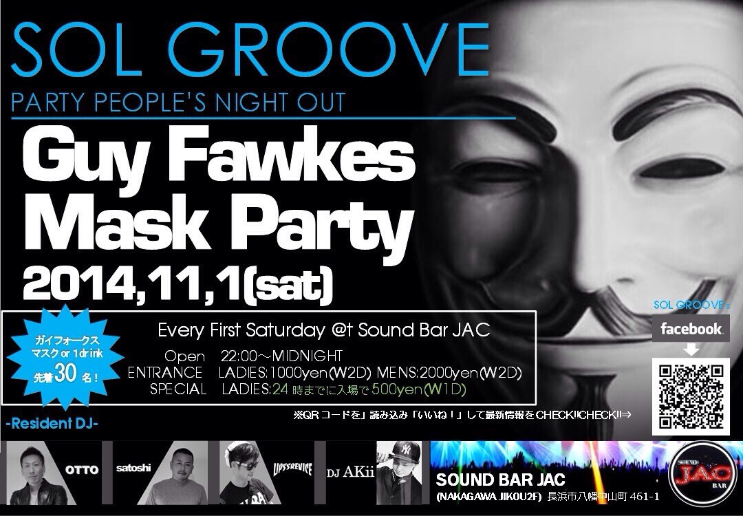 そして今回、このガイ フォークスマスクをSOL GROOVEで先着30名様にプレゼントします!
