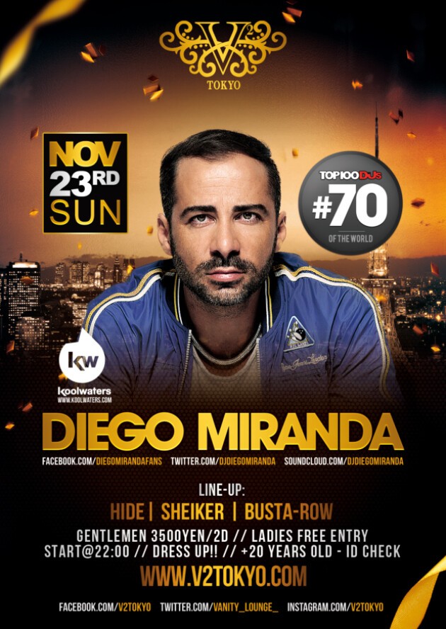 11/23祝前日(日曜)DJ MAG2014 top100 #70位にランクインした『DIEGO MIRANDA』がV² TOKYOに初来日初登場します♪♪