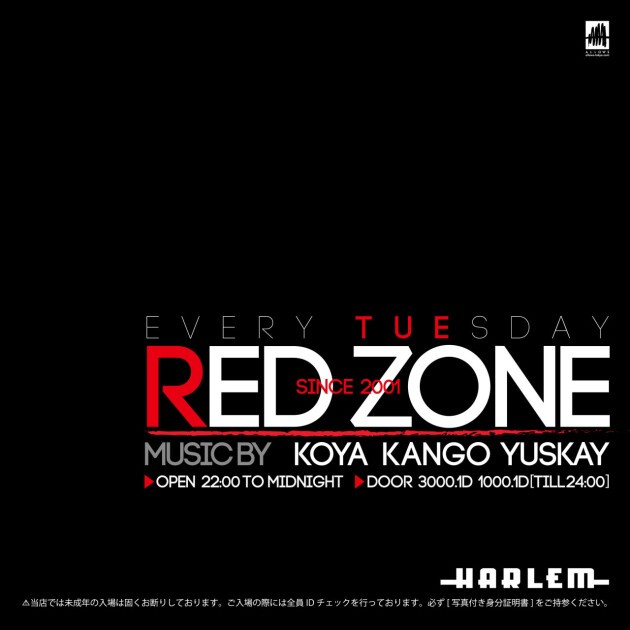 東京発信、世界水準のPARTY "RED ZONE"。最先端の潮流を取り入れながらオリジナルなスタイルを展開し、国内外から広く話題を集める。2001年よりスタートし今年13年目に突入。