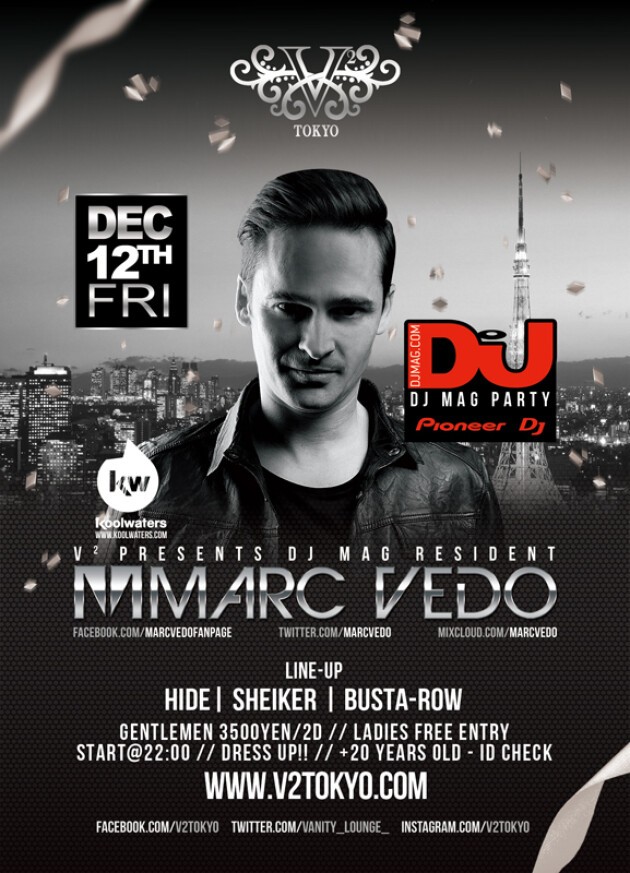 12/12(金)DJ MAG PARTYを開催♪SP GUEST には『MARC VEDO』がV² TOKYOに初登場します♪