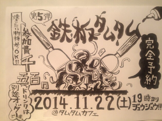 鉄板チャージ1500円(1ドリンク別途オーダー/完全予約制)
